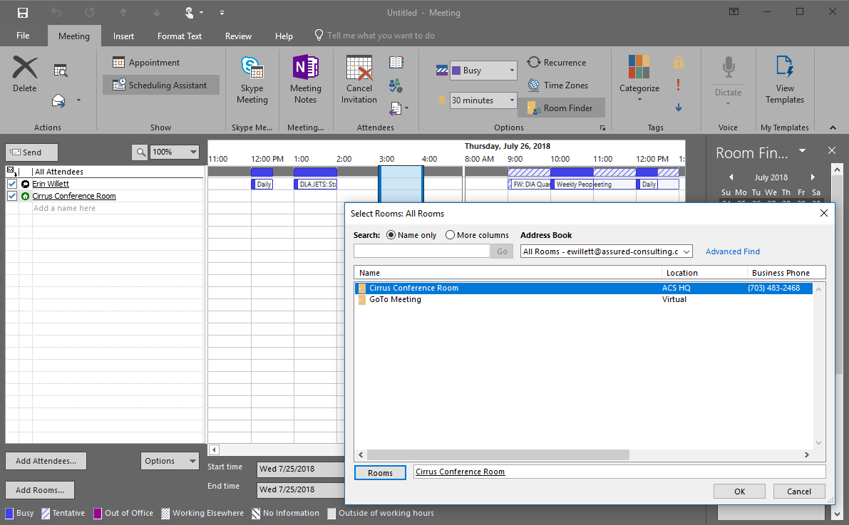 Scheduling Assistant will show you if any meetings are already scheduled in your